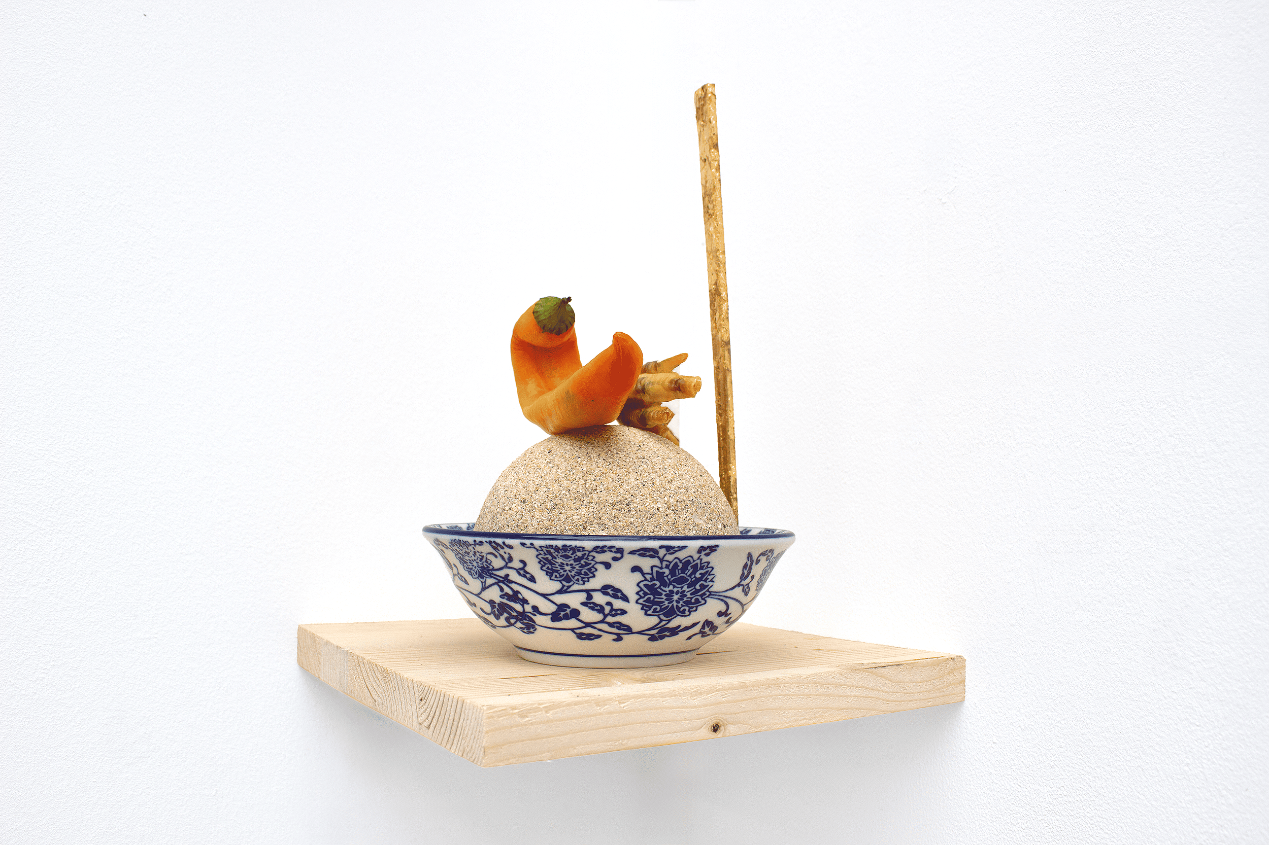 sand, pepper, chicken feet, palm leaf